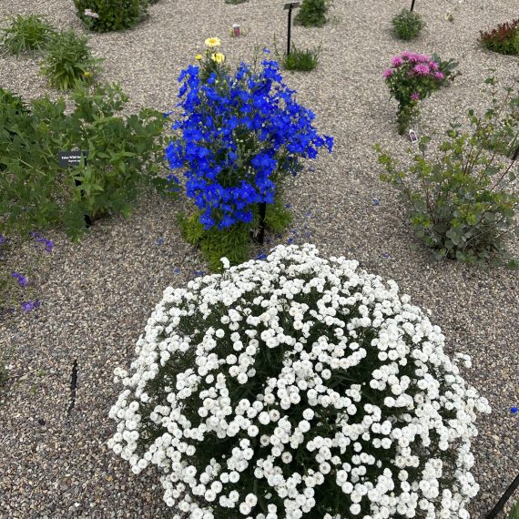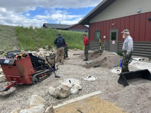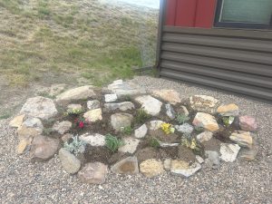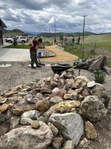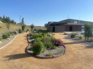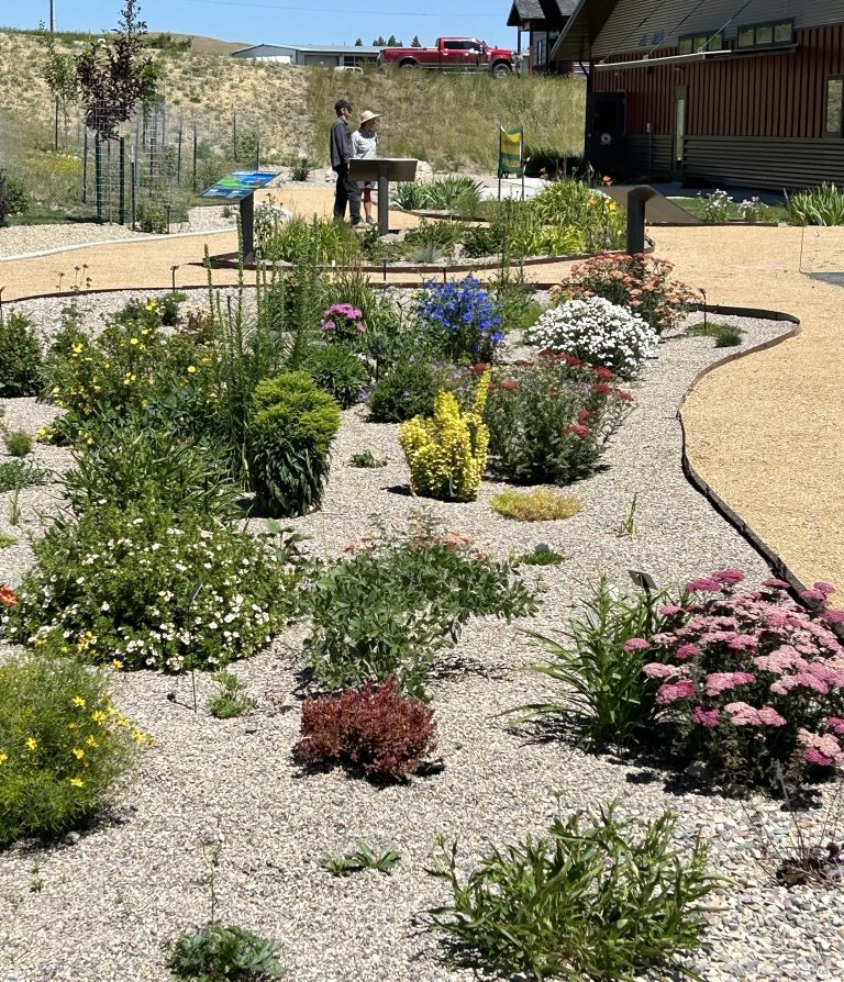 During the spring and summer of 2022 irrigation, landscaping and the first phase of planting was completed. Over 52 flowering plants, 21 shrubs, and 10 trees were planted. A large variety of plants were planted to better demonstrate the wide range of fire wise vegetation that is available to use in this region of Montana. The garden was designed and planted to demonstrate that an effective landscape design includes well-spaced plants with low-flammability characteristics, surrounded by a non-flammable material like stone