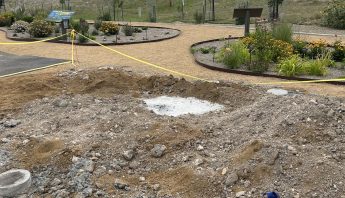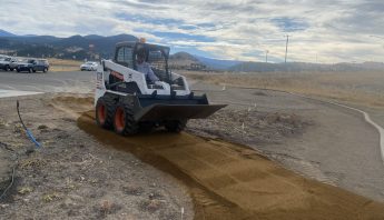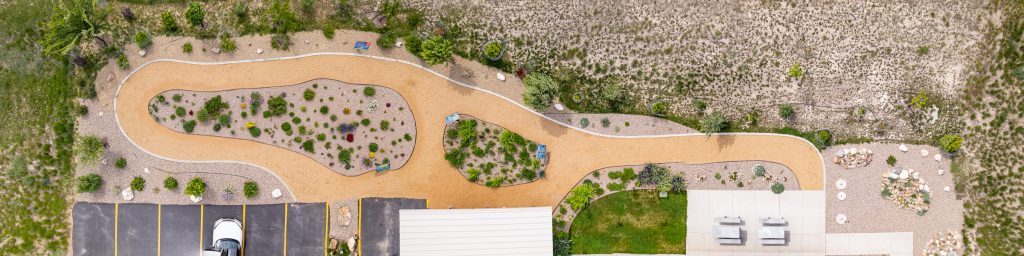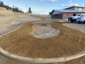 In 2021, the approximately one-half acre of land west of the fire station was prepped by removing the existing crested wheatgrass and reworking the soil. Irrigation, a concrete border, landscaping fabric, decorative rock and a decomposed granite pathway were installed. The pathway and site amenities were designed to be handicap accessible.