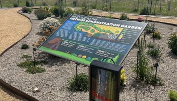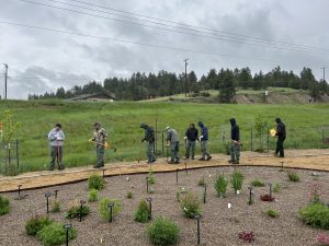 Spring kicked off a busy season at the garden. The final garden bed, was constructed. Native plants and rocks were used for the new crevice garden, demonstrating how non-irrigated, native plants can be very attractive. The summer months were spent weeding and replacing some plants that died over the winter. Four interpretive signs were installed and garden brochures were made available for the public. In September, construction on the Sonny Stiger Memorial Pavilion began through the generous volunteer efforts of Abraham Construction and a generous donation from the Wolf Creek Cattle Company and TrueNorth Steel.