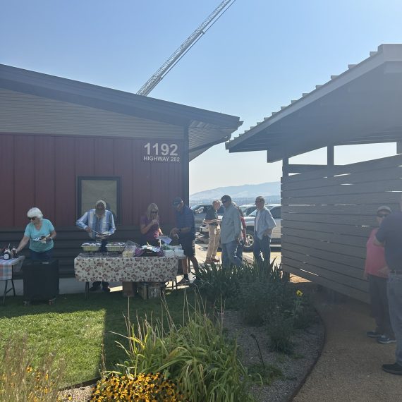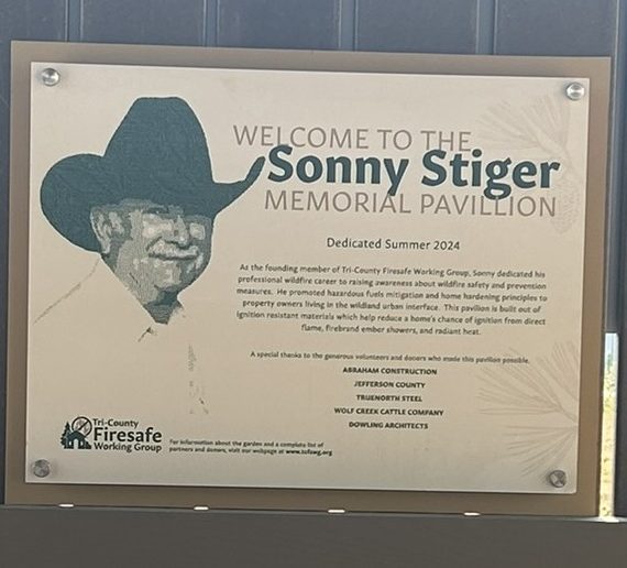 A BIG blue sky and the Elkhorn Mountains were the perfect backdrop on a beautiful September day for an open house and dedication of the Sonny Stiger Memorial Pavilion and the Fire Wise Garden. More than a 100 people gathered to enjoy the open house which consisted of garden tours, plant giveaways, a BBQ lunch, and the display of the Mt. City Volunteer Fire Department trucks and apparatus. The focus of the event was to recognize garden sponsors and volunteers and to dedicate the pavilion. The pavilion was named in honor of Sonny Stiger, the founding member of TCFSWG, who dedicated his professional wildfire career to raising awareness about wildfire safety and prevention measures. The pavilion serves as a gathering area and contains materials about fire wise landscaping and wildfire safety. A special thanks to our garden volunteers and sponsors who helped make the event such a success!