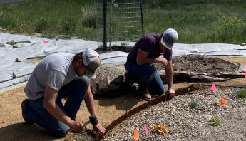 Next, it was time to build our crevice gardens. The difference between a crevice garden and a regular rock garden is the mix of growing material and placement of the material so plants have the ability to put their roots down deep between the rocks. The middle of our crevice gardens has native plants exclusively, which were collected locally and are thriving without any irrigation.